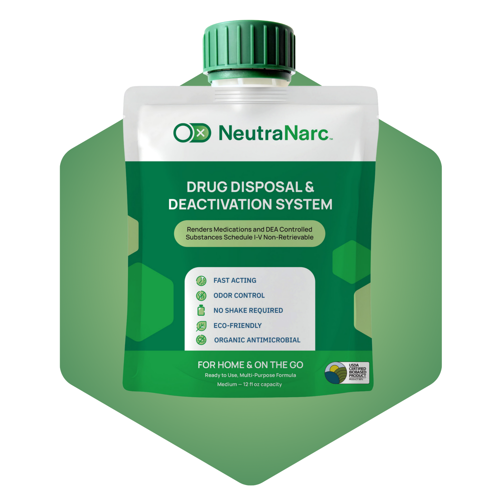 The NeutraNarc® Pouch Medium sets a new standard in personal drug disposal by combining cutting-edge technology with environmental stewardship to rapidly deactivate a wide range of DEA-controlled and non-controlled medications. This product is ideal for home and on-the-go use, providing individuals with a portable, secure solution for disposing of leftover or expired medications. Designed for ultimate convenience, medications and controlled substances can be safely rendered non-retrievable anywhere, at any time.