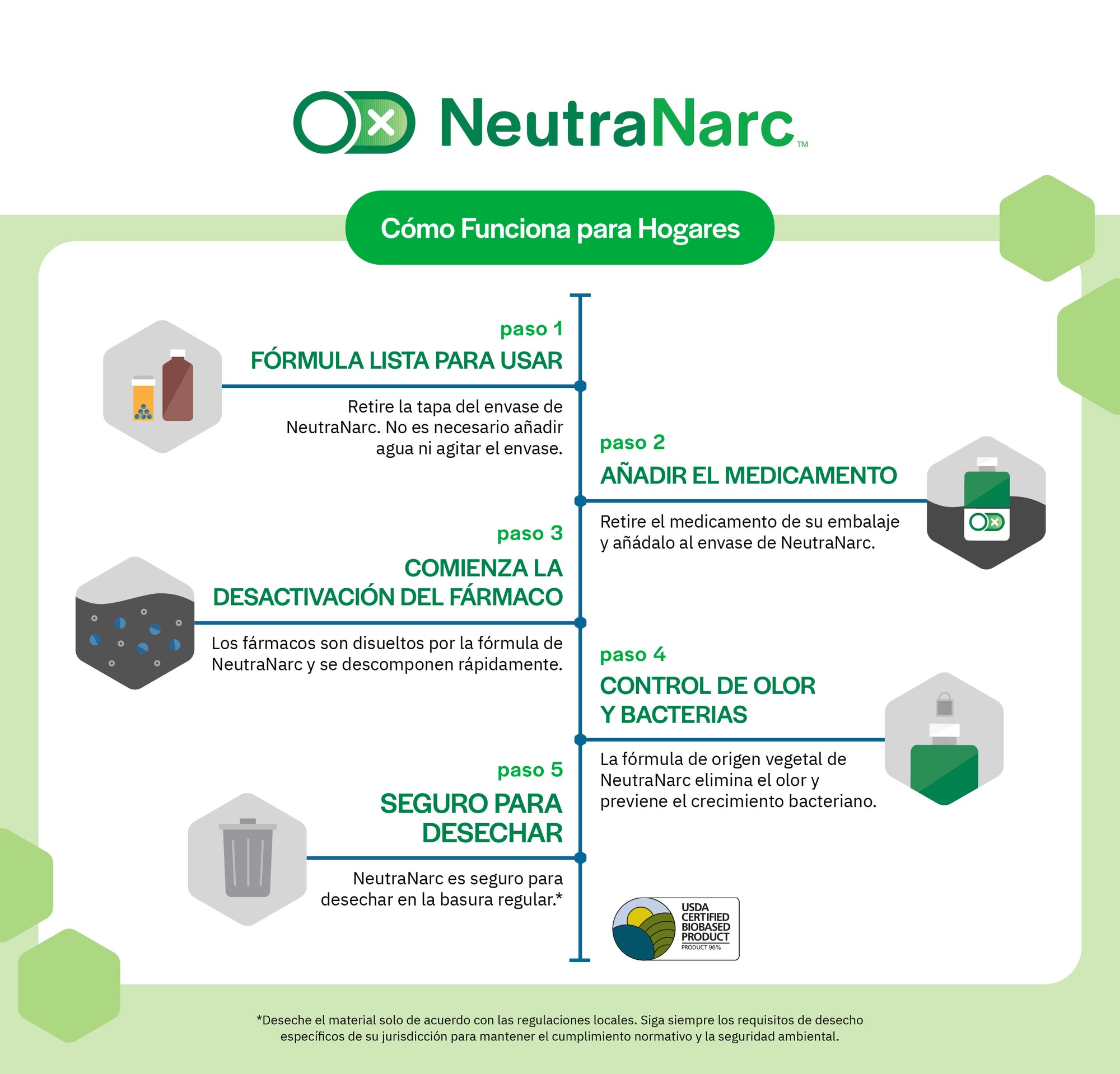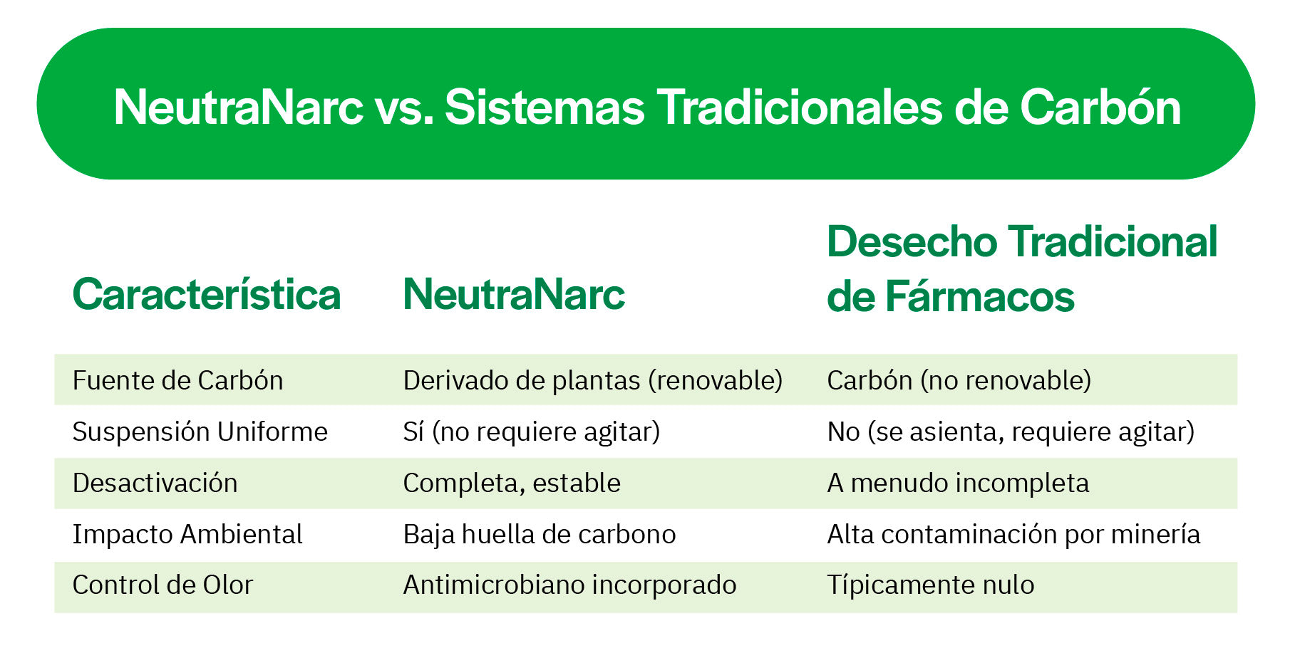 Los residuos farmacéuticos se encuentran cada vez más en el agua potable y en los suministros de agua superficial, lo que genera preocupaciones ambientales y de salud pública. A diferencia del desecho por el inodoro o los métodos de eliminación tradicionales, la fórmula biodegradable de NeutraNarc evita que los medicamentos entren en los sistemas de agua, protegiendo la vida silvestre, los ecosistemas acuáticos y la salud humana.